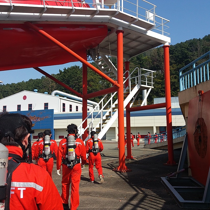 연수원에서는 해상생존훈련 및 육상안전훈련, 기초안전훈련, 소화심화훈련을 실시했다.